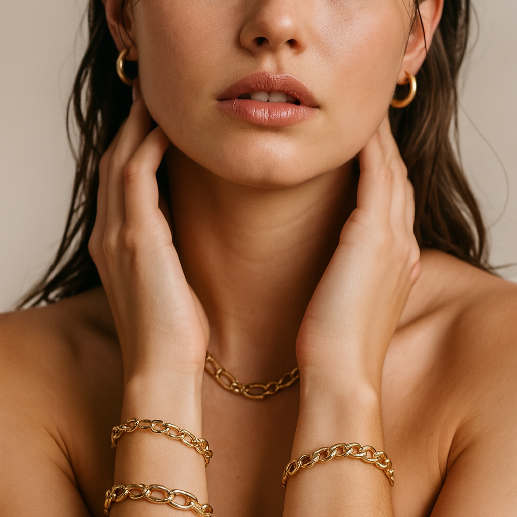 Our pieces are designed to blend into your day and stand out in your life. Whether you're dressing up or keeping it casual, we craft timeless essentials that move with you — waterproof, non-tarnish, and endlessly wearable.