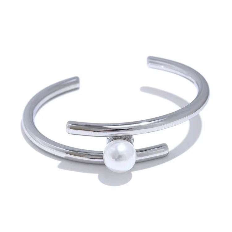 Crafted from premium stainless steel and available in both gold and silver finishes, this bracelet is non-tarnish, waterproof, and hypoallergenic, ensuring durability for everyday wear. Its open design makes it comfortable and easy to wear, while the pearl detail adds a touch of classic charm.